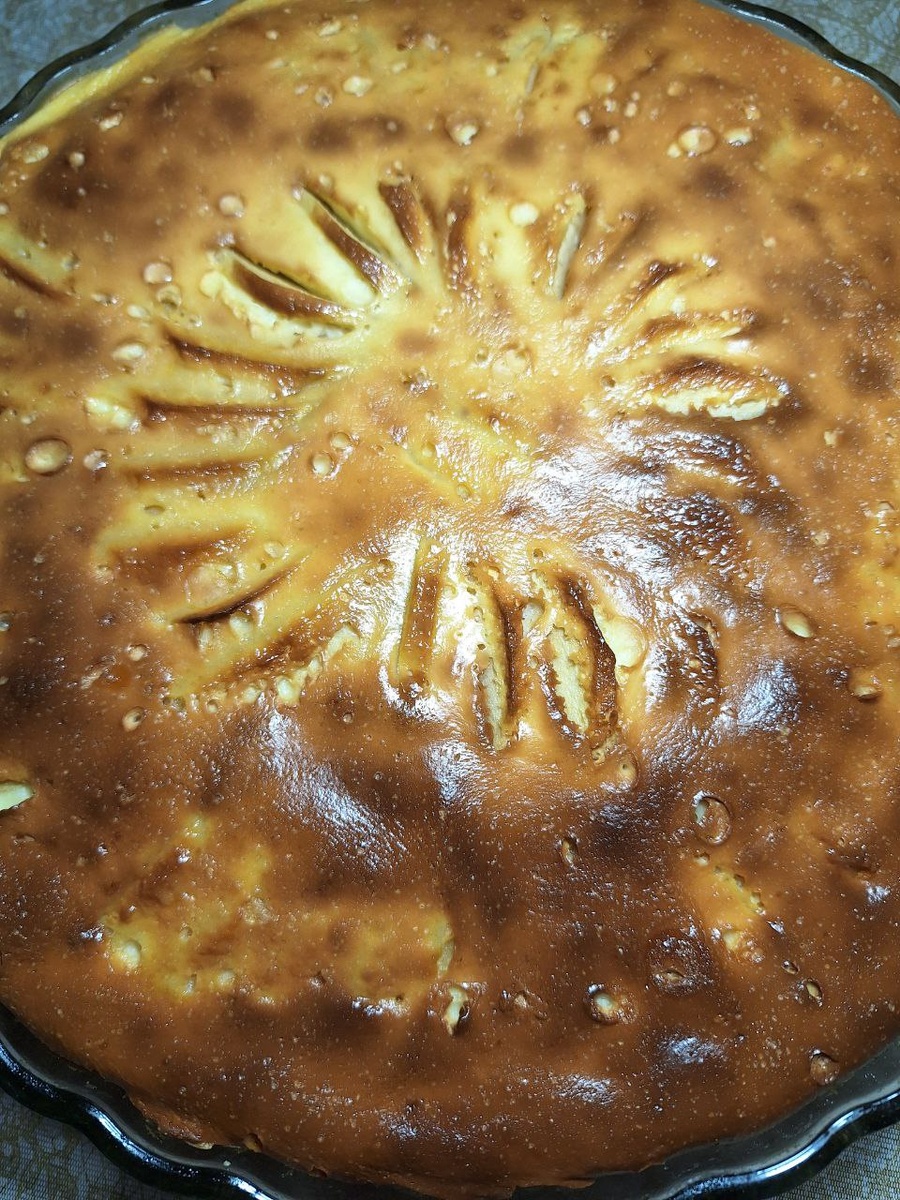Яблоки выкладываем в на хлест и сверху выливаем сметанную заливку. Отправляем в духовку на 180 гр 40 минут.По желанию сверху можно посыпать сахарной пудрой.