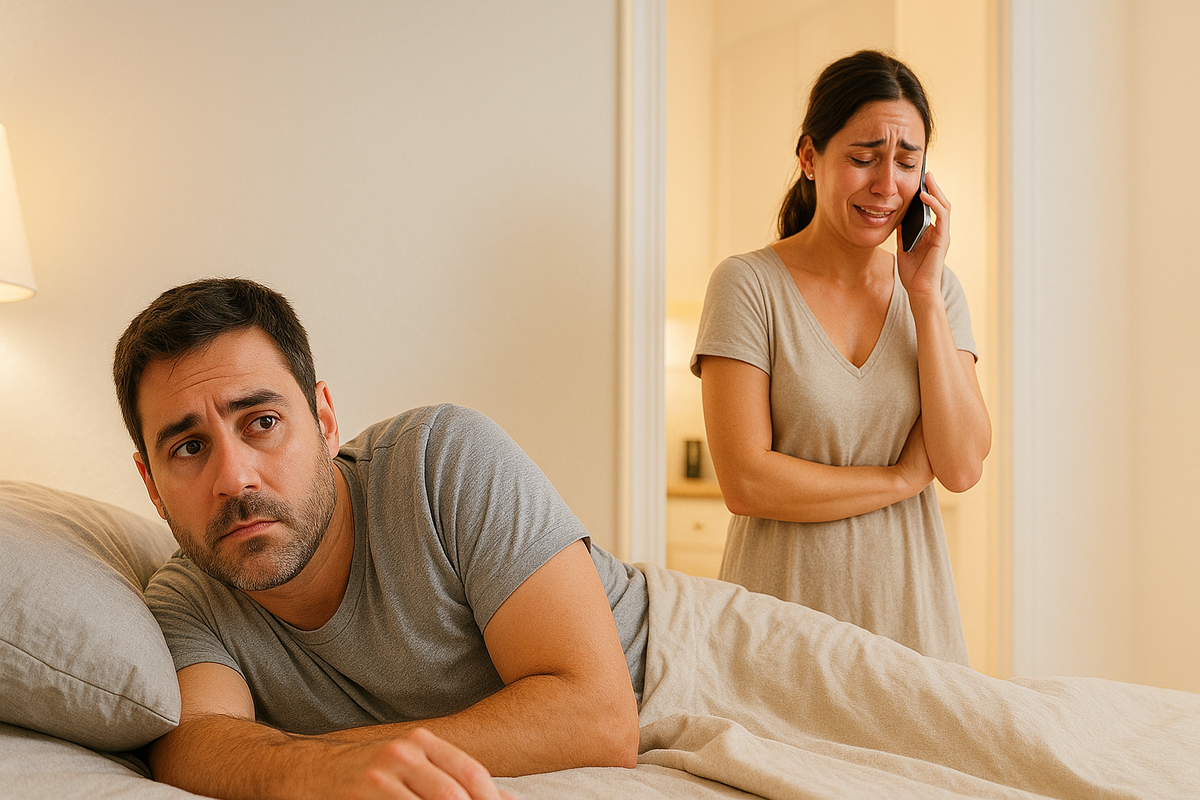 Через приоткрытую дверь видел её силуэт — спина дрожит, пальцы сжимают телефон. В свете лампы блеснули слёзы.