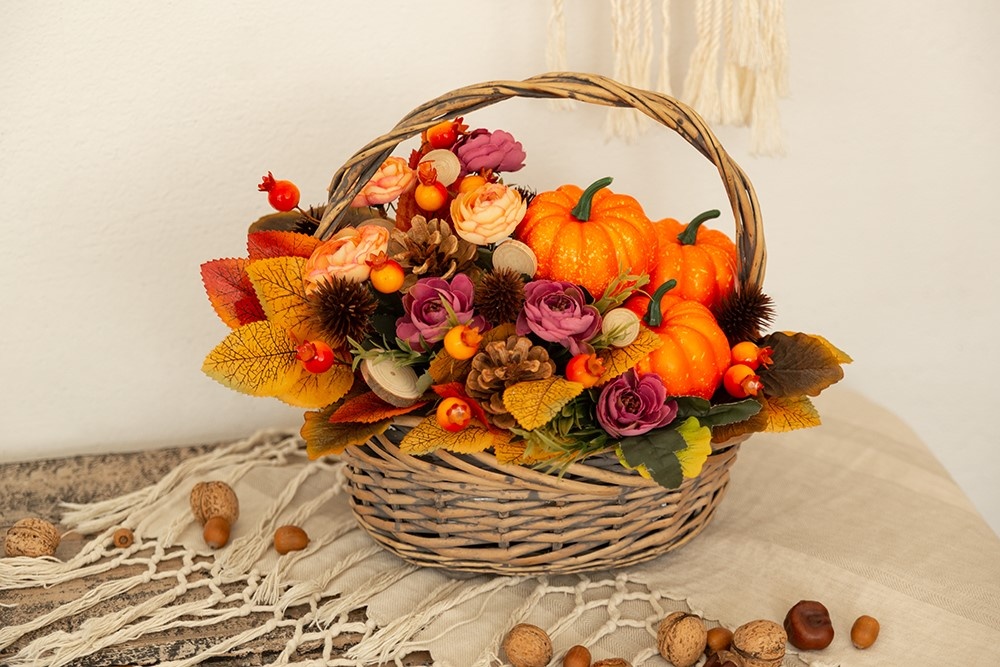 Декоративная композиция «Корзина с тыквами» по мастер-классу.