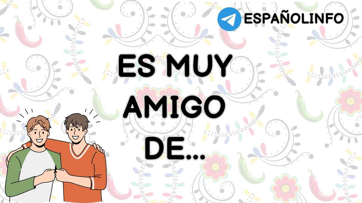 Amigo muy bueno, amigo muy cercano - это скучно! Берем более разговорную форм 〰️Es muy amigo de... 🔹 Примеры: Es muy amigo de Marta. Он близкий друг Марты. Somos muy amigos con Juan. Мы очень хорошие друзья с Хуаном. 🤓Однако эта фраза также используется в переносном смысле, чтобы сказать, что человек любит что-то делать или имеет склонность к чему-то. 🔹 Примеры: Juan es muy amigo de las fiestas. Хуан любит вечеринки. No soy muy amigo de madrugar. Я не особо люблю рано вставать. Еще больше испанского на основном Telegram-канале 🌎