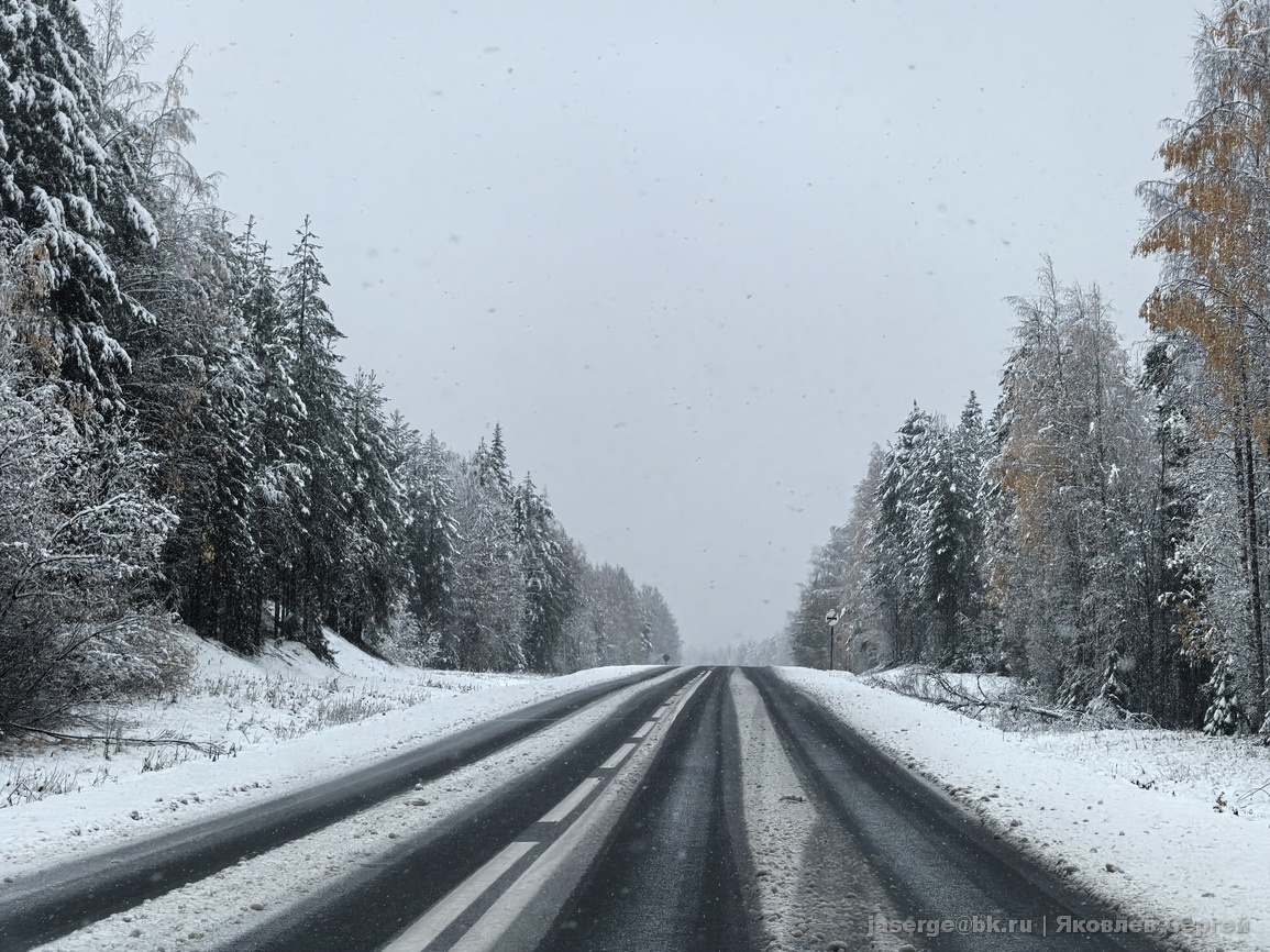 Так бывает, что всего 100-150 км от Архангельска и уже совсем другая погода. Сам Архангельск с утра чуть-чуть присыпало снежком, а вот Холмогорский округ завалило снегом так, что многие поселения сидят без света из-за обрыва проводов. Посмотрите какая с утра была красота, а вот к вечеру уже все растает. А вот и зимний Сийский монастырь И для сравнения. Так было всего две недели назад.