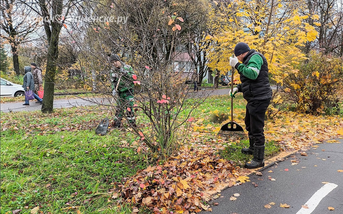 Уборка осенней листвы на улицах Краснознаменска