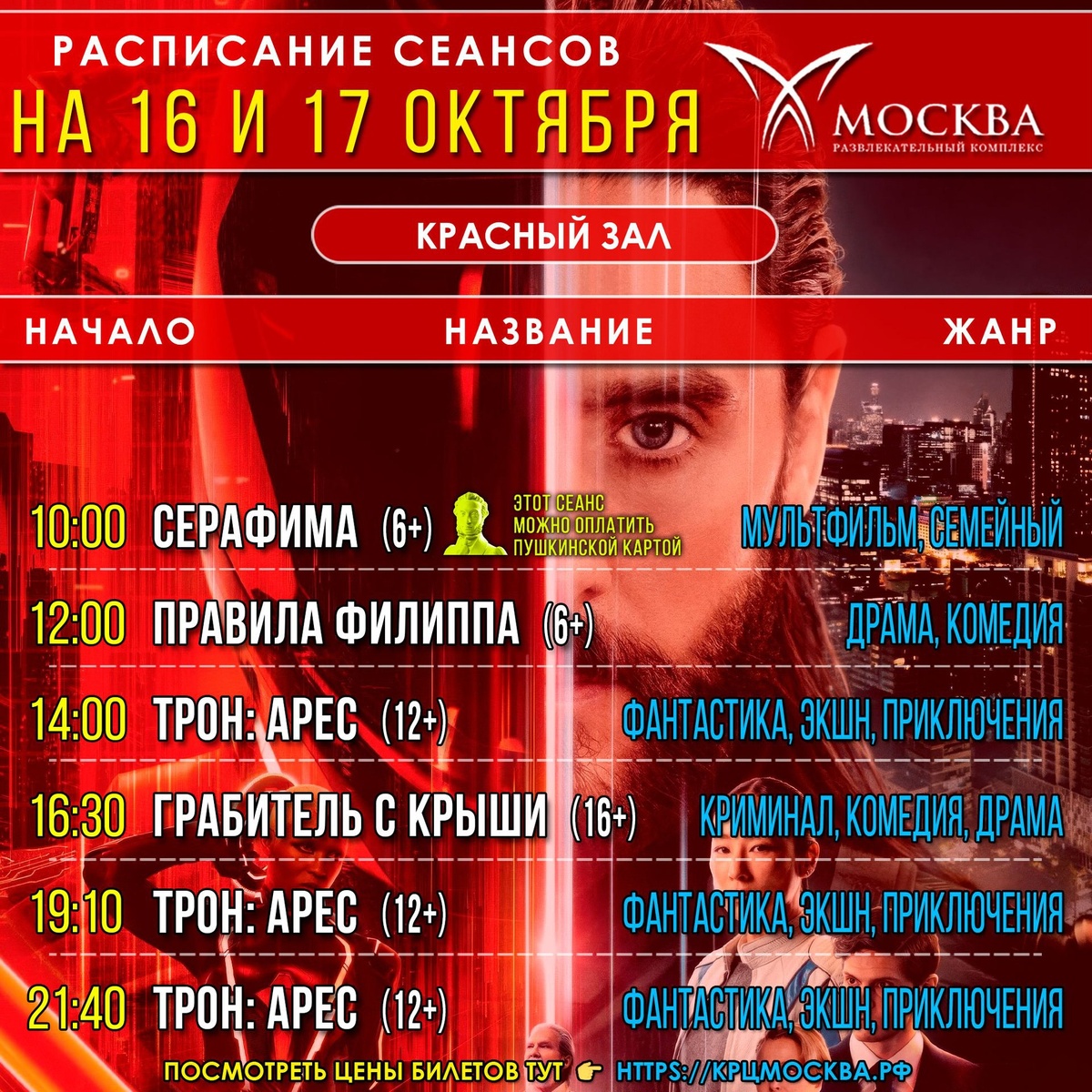 #расписание_сеансов на 16 и 17 октября Фильм «Первый на Олимпе» и мультфильм «Серафима» можно оплатить Пушкинской картой 💳 Посмотреть цену и купить билеты онлайн можно на нашем сайте https://крцмосква.рф/ и в приложении Google Play и App Store «Кинотеатр Москва, г. Каспийск» ▰▰▰▰▰▰▰▰▰▰▰▰▰▰▰▰▰ #купитьбилет #афиша #смотритевкино #крцмосква #каспийск #ценабилетов #кино #фильм #cinema #kaspiysk