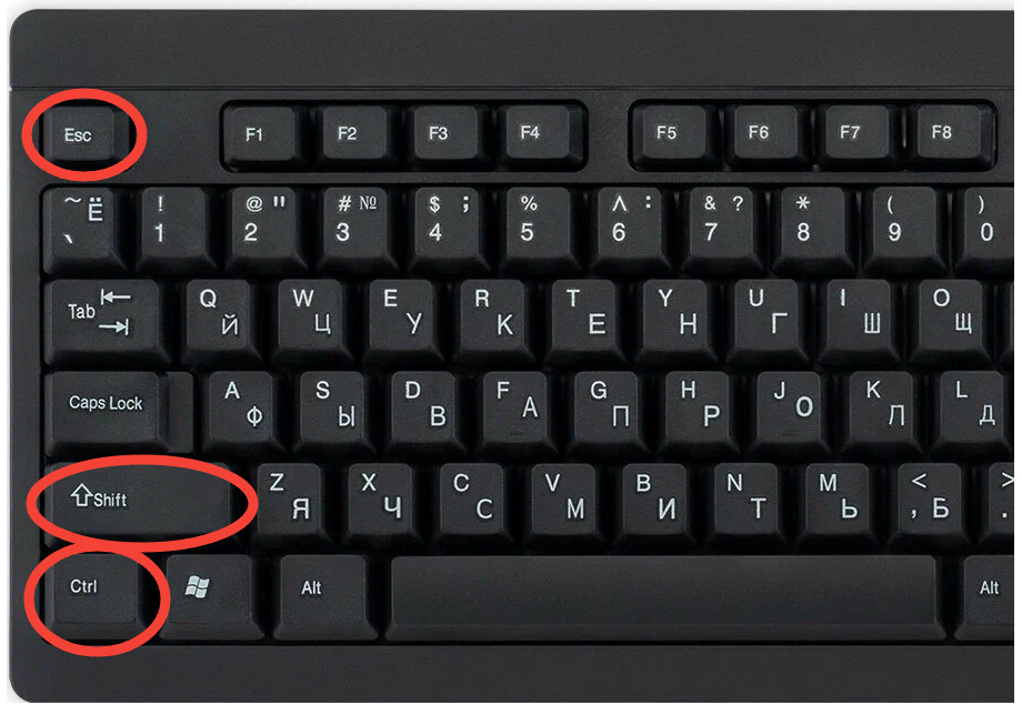 Просто нажмите на клавиатуре разом три кнопки: Ctrl + Shift + Esc. Способ 2: Классический