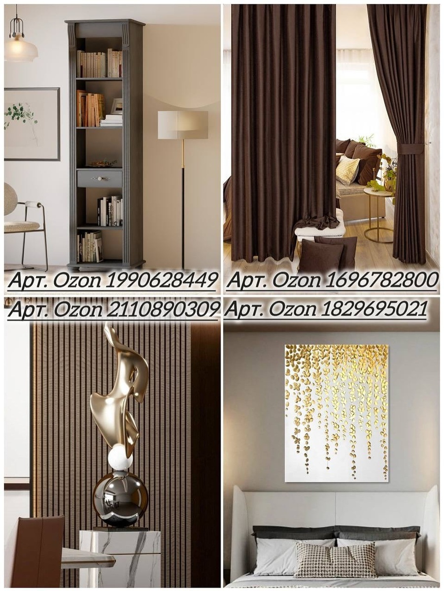 Нейтральная палитра, плавные линии, благородные акценты металла и сияние теплого света — всё это формирует современный роскошный интерьер без вычурности. Я собрала для вас стильные находки с «Озон», которые прекрасно сочетаются между собой и помогают создать цельный образ дома: от шкафа и кровати до светильников, панно и изящных консольных столиков. Ниже — каждая позиция по порядку, с кратким рассказом о характере предмета и советом стилиста, как внедрить его в интерьер максимально эффектно.