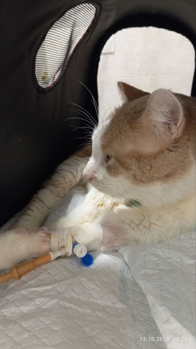 Вчера на капельнице Максимку что-то забеспокоило. Лекарства эмицидин и кокарбоксилаза шипучие. Даже пытался укусить меня сегодня, когда пришлось лапу придерживать.
