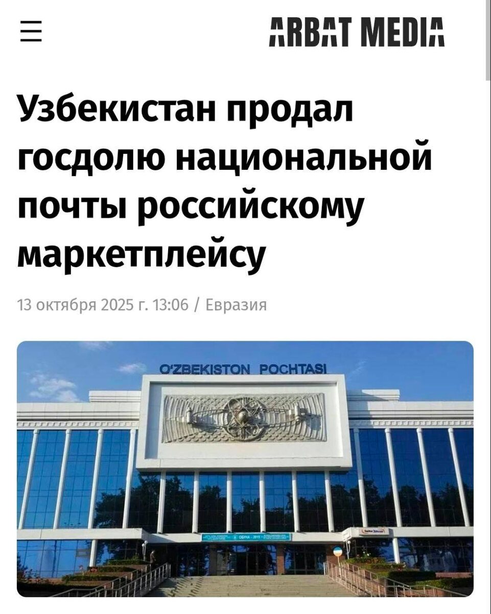 🟣 Wildberries купил почту Узбекистана? Звучит как мем, но, кажется, это уже не шутка 😅 Узбекские СМИ сообщают, что Wildberries получит минимум 20% UzPost и около 50 зданий почтовых отделений. Официально UzPost всё отрицает, мол, «если бы был инвестор — мы бы рассказали». Но зная, как WB за последний год скупает аэропорты, склады, участки под логистику и IT-компании, поверить в это — совсем не сложно. 📦 Если новость подтвердится, это может быть входом WB в почтовую и логистическую инфраструктуру ЦА, что, кстати, идеально вписывается в их стратегию по расширению на рынок СНГ. После аэропорта «Магас» и Башни в Сити, почта звучит даже логично 🤷♂️ Как думаете, это очередной инфоповод или WB реально строит собственную “империю доставки”? 🚀 👉Подписаться @ivanovso