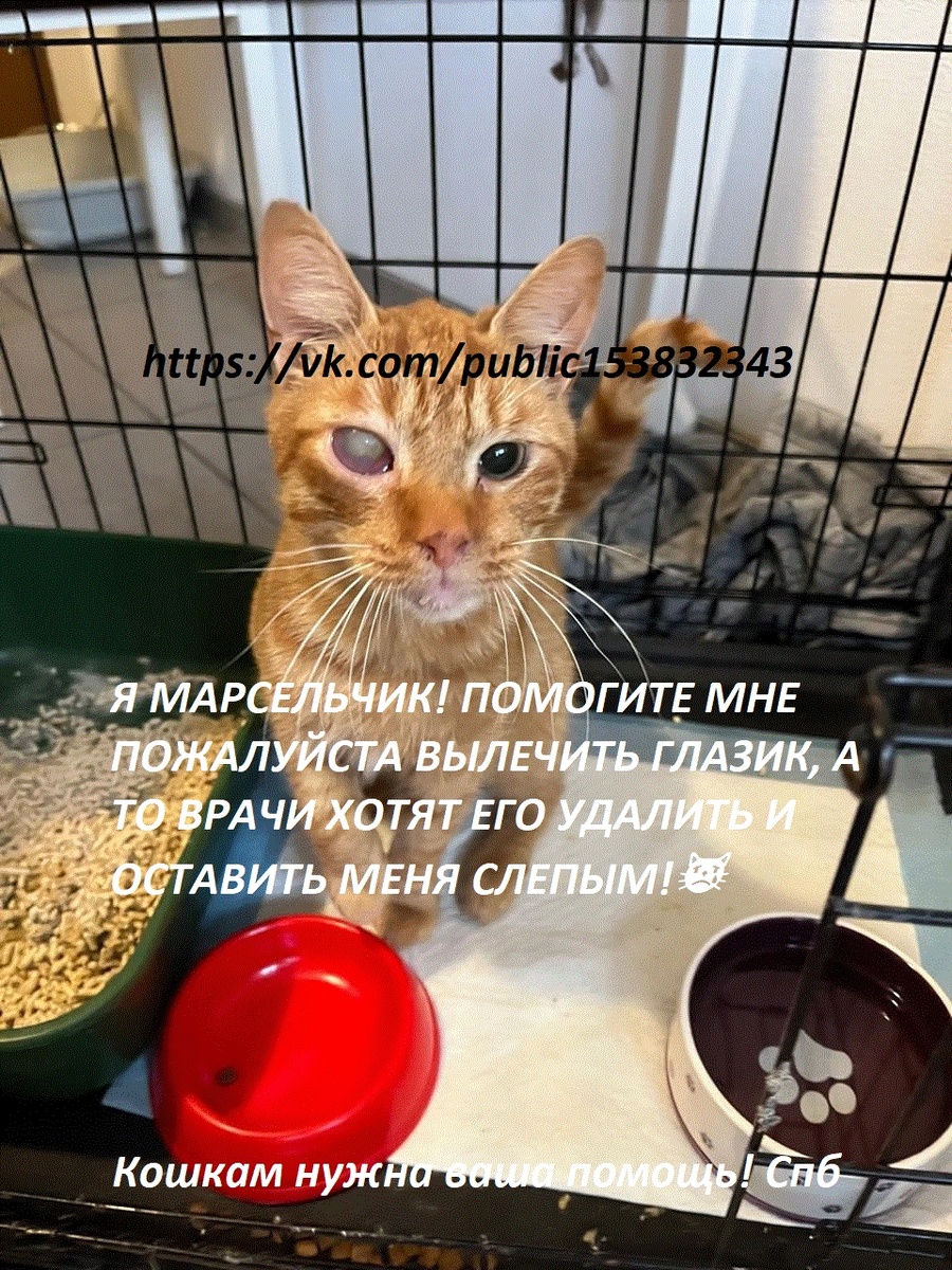 Санкт-Петербург Друзья, этот солнечный рыжик Марсель прошел через голод и холод заброшенного садоводства. Он только начал верить, что люди могут дарить ласку и защиту, но теперь столкнулся с новой бедой — он может потерять глазик. 😿 Первый врач сказал, что правый глазик не спасти, и готовил нас к удалению. Но мы не можем сдаться, не испробовав все шансы! Мы верим, что зрение еще можно сохранить, но для этого нужны: Правда в том, что у нас нет этих денег. Мы уже в долгах из-за лечения других подопечных. Но смотреть, как молодой двухлетний котик теряет глаз, когда есть вероятность его спасти, — невыносимо. Марсель заслужил видеть мир двумя глазами! Помогите нам дать ему этот шанс. 🙏 Мы собираем 30 000 рублей на: 📌 РЕКВИЗИТЫ ДЛЯ ПОМОЩИ: Сбор ведёт куратор — Жанна Владимировна Ф. Карта Сбербанка: привязана к номеру +7 (921) 969-35-01 Карта Райффайзенбанка: привязана к номеру +7 (921) 969-35-01 💡 ОБЯЗАТЕЛЬНО указывайте в комментарии к переводу: «На Марселя» 📊 Финотчёт по котику будет т