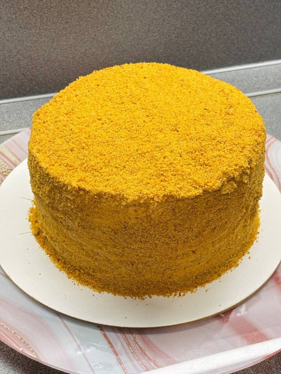 Медовик на быструю руку. Крем: масло с вареной сгущенкой.