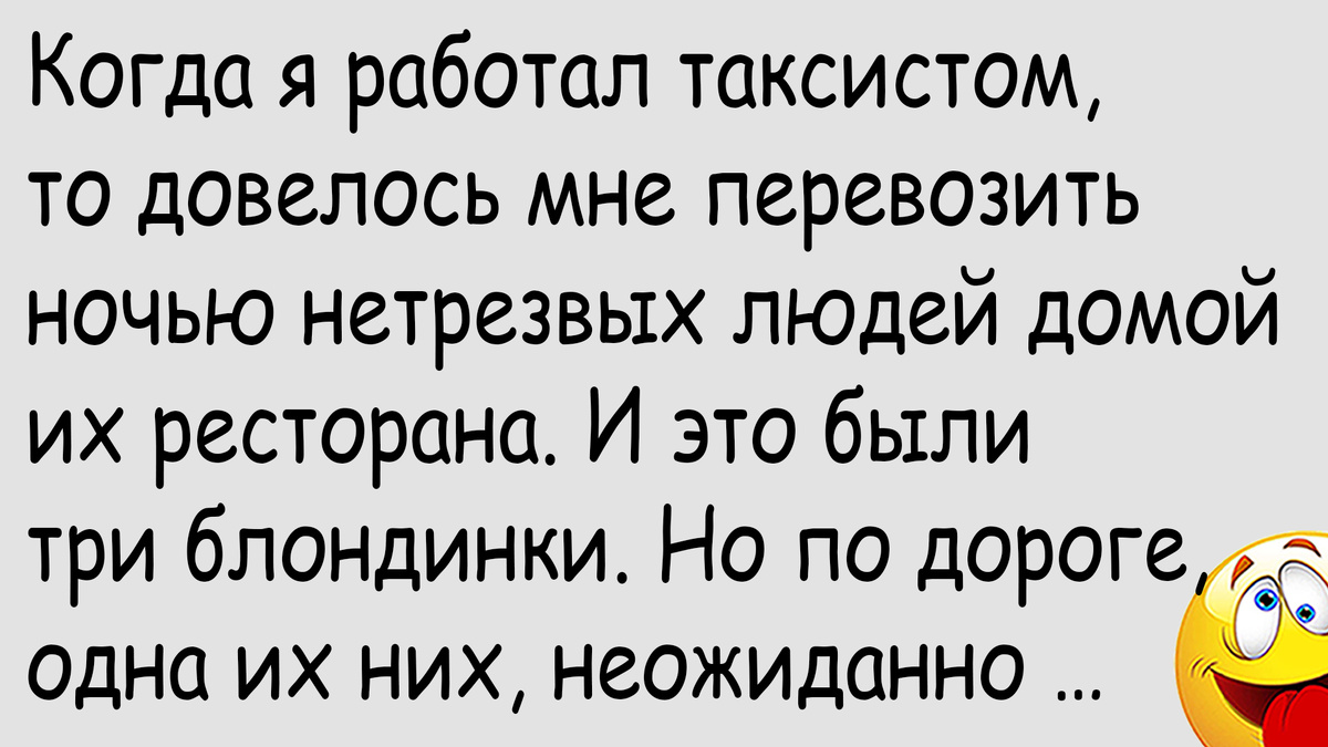 Если вы когда-нибудь работали в такси, то наверняка знаете, насколько интересна и увлекательна эта работа. Возможно именно поэтому, таксисты могут рассказать много курьезных и смешных историй которые произошли с ними. Ну, или не с ними, а другими людьми, кто уже теперь разберет? Самое главное, что у таксистов всегда есть работа – и днем, и ночью, и в выходные, и в праздники. А если нет, то таксист может сам эту работу себе найти. У меня друг как-то во время простоя начал бывших клиентов и свои услуги предлагать. И, как ни странно, но нашел. Очень интересные клиенты в такси – это женщины. Особенно, блондинки. Особенно, нетрезвые блондинки. Особенно, нетрезвые блондинки, которым надо ехать куда-то ночью. Подобная ситуация случилась у меня недавно. И Вы знаете, она меня очень повеселила. Короче, поступил вызов к местному ресторану примерно в три часа ночи. Приезжаю и вижу трех дамочек, которые еле стояли на ногах. И все дамочки, как на подбор – блондинки. Я еще подумал, что может сегодня