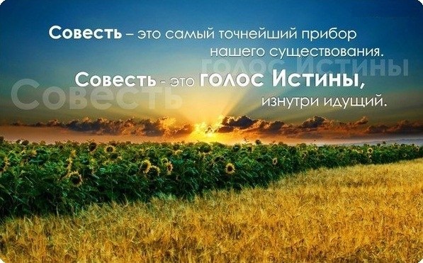 Сейчас передачу посмотрел по ТВ. Там короткие истории из жизни человеков - и психолог им чего-то-там советует. Да в принципе от любопытства просто смотрю, от нечегоделать, интересно чем там закончится. И в конце психолог говорит как бы послесловие ... итог или вывод. И вот в этот раз был приятно удивлен словами психолога. Примерно так он сказал : Самое главное чувство в жизни человека - не любовь. Самое главное чувство - это совесть. Если любовь уйдет - это беда, но это не трагедия. А если уйдет совесть - это уже катастрофа. Вот неожиданно было такое услышать из уст психолога. Они ведь не упоминают о совести - потому что сами люди не хотят совести... они хотят эмоций, искр, страсти, чувств, лювби ... а совесть им только мешать будет. И радует, что иногда всё-таки ставят совесть на первое место. Не забывают о ней.