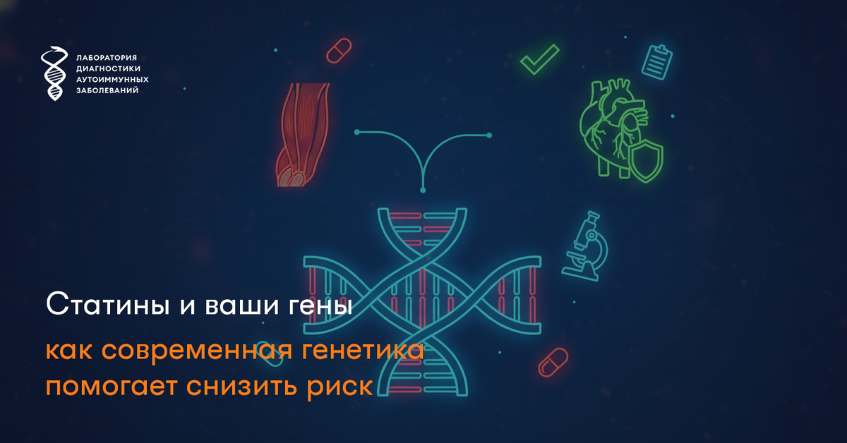 Ответ кроется в наших генах. Гены — это инструкция для нашего организма, и они определяют, как мы усваиваем, метаболизируем и выводим лекарства. У некоторых людей есть врожденные особенности (полиморфизмы) в определенных генах, которые замедляют метаболизм статинов. В результате препарат может накапливаться в крови и достигать токсичных концентраций, повышая риск повреждения мышц.