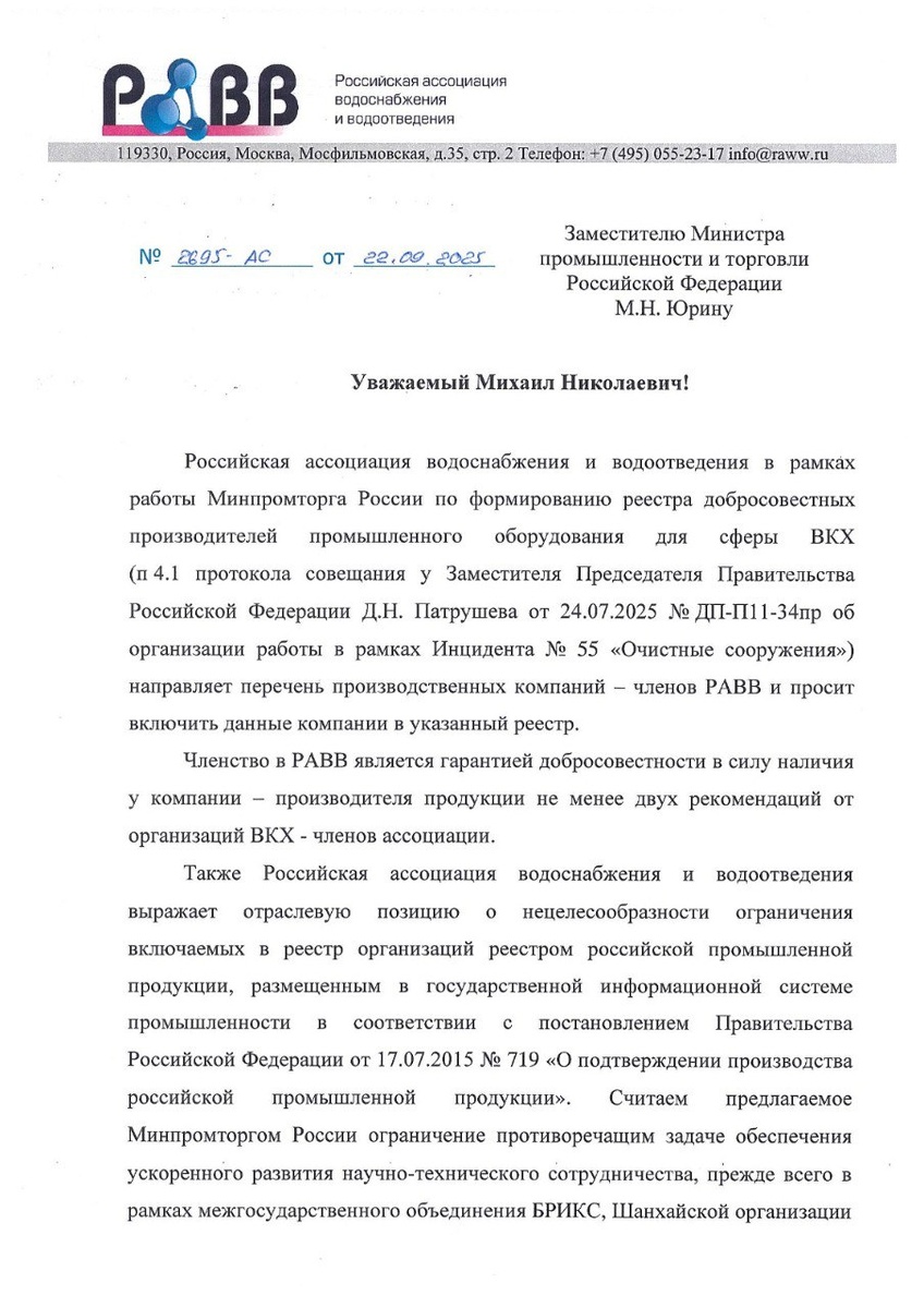 ✅ «ТОПОЛ-ЭКО сервис» входит в перечень добросовестных производителей, признанных Российской ассоциацией водоснабжения и водоотведения