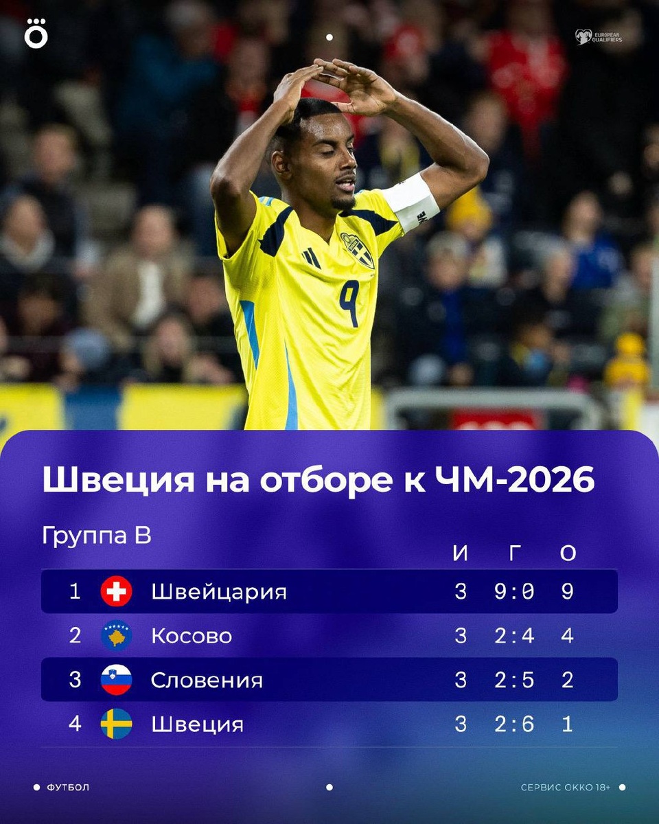 Швеция проваливает отбор на ЧМ-2026. Но шансы на стыки все еще есть 🇸🇪