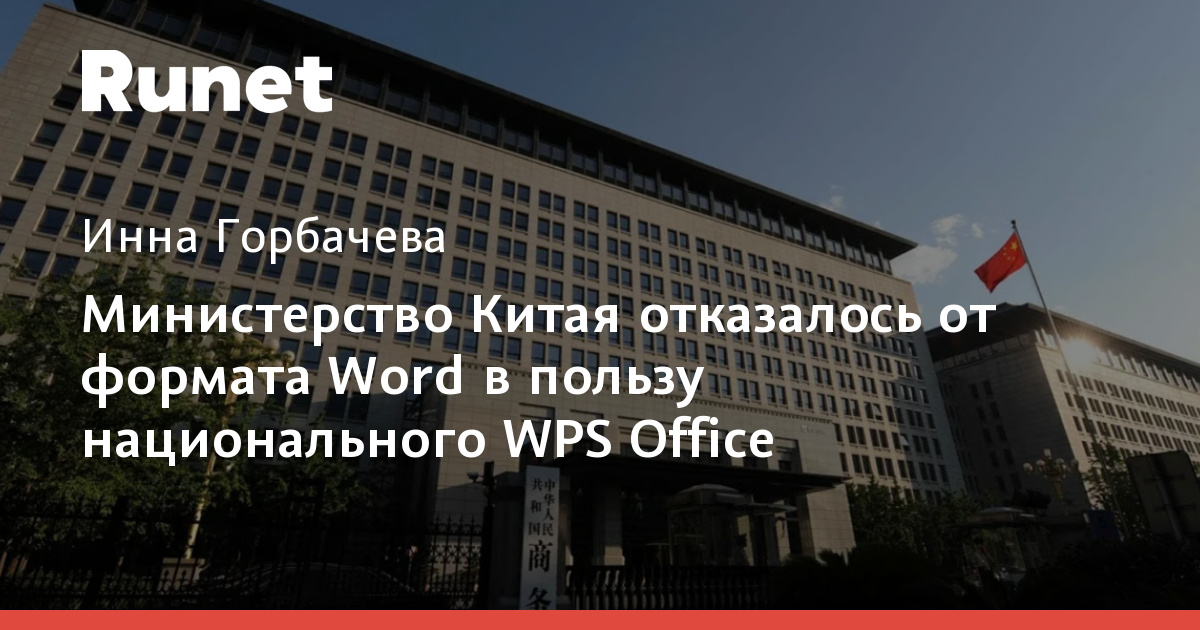 Министерство коммерции Китая опубликовало ряд официальных документов, которые впервые можно открыть только через китайский аналог Microsoft Office — программу WPS Office, разработанную пекинской компанией Kingsoft. Ранее ведомство в основном публиковало текстовые документы в стандартном формате Microsoft Word, сообщает РБК со ссылкой на издание South China Morning Post. «Разработанный пекинской компанией Kingsoft, WPS Office использует иную структуру кодирования, чем Microsoft Office, что означает, что текстовые файлы WPS невозможно открыть напрямую в Word без конвертации», — говорится в материале издания. Решение китайского министерства отказаться от американского программного обеспечения произошло на фоне эскалации торговой войны между США и Китаем. 10 октября президент США Дональд Трамп анонсировал повышение пошлин на китайскую продукцию — с 1 ноября США введут против Китая 100-процентные пошлины сверх тех, которые действуют в настоящее время. Кроме того, с 1 ноября будет введен экс