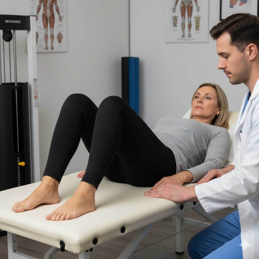 🤲 Помощник фиксирует таз, чтобы он не смещался.