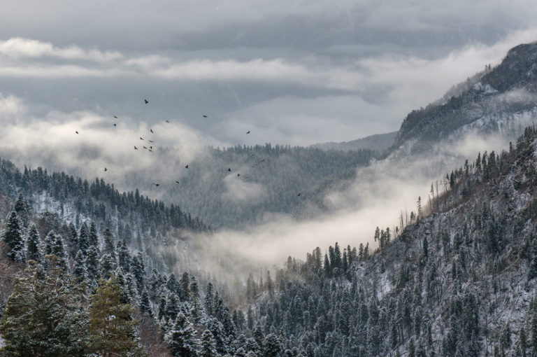 Балканский циклон «Барбара», бушевавший на юге России с пятницы, принес в горы Кавказа сильные осадки.
