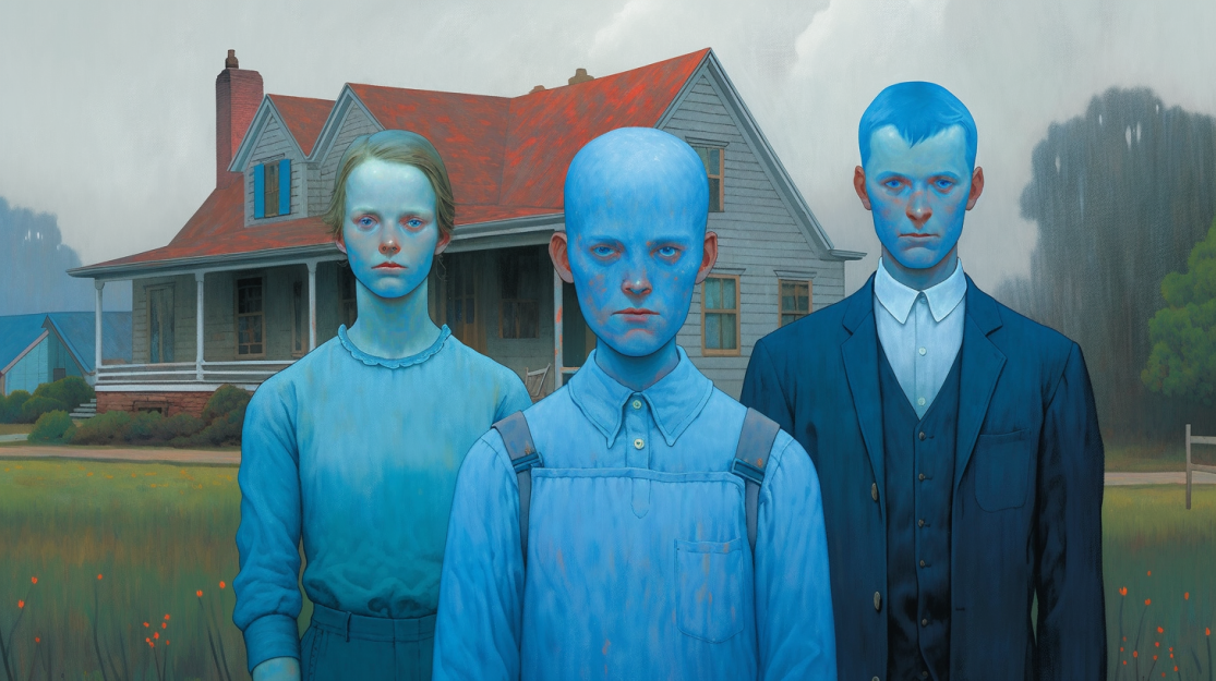 И, естественно, в жизни детишкам пришлось сложно. Странную семейку сторонились, а так как поселений в округе было не так и много, личная жизнь у семейства как-то не заладилась. Ну и давайте не будем игнорировать слона в комнате. Конец XIX, начало XX века, в глухой Америке. Выбирать было особо не из кого, гормоны требуют своего... И вот этот ген спокойно гулял внутри семьи. В качестве жён и мужей Фугейты брали себе кузенов, кузин, тёть, дядь и так далее. Это не выпускало ген за пределы поселения, и синяя кожа стала отличительным знаком у всего семейного клана. При этом им очень крупно везло в том плане (критическая удача, при критическом промахе, прямо), что многих представителей этого клана обходили стороной все остальные симптомы болезни. Не было частых головокружений, припадков эпилепсии, проблемы с лёгкими и сердцем, судорог и так далее. Долгие годы семья следовала всем традиционным скрепам Американской глубинки — много детей, здоровый образ жизни, работа на ферме и свежем воздухе. Посторонних людей они обычно избегали, да и те не выказывали доброжелательности к странным соседям, жившим возле гор, считая их, как минимум пугающими.