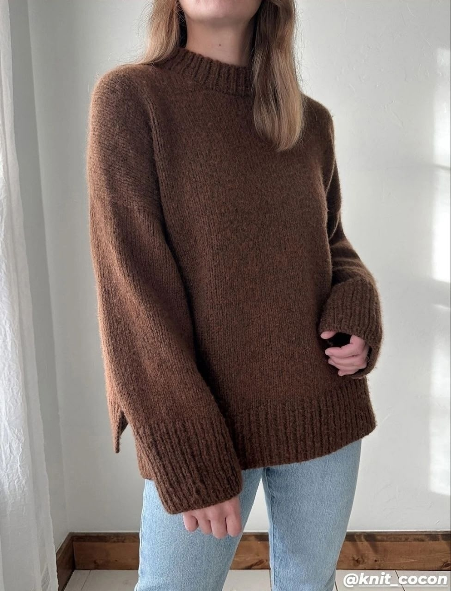 Свитер связан лицевой гладью. Но... посмотрите какие интересные клинья по бокам.