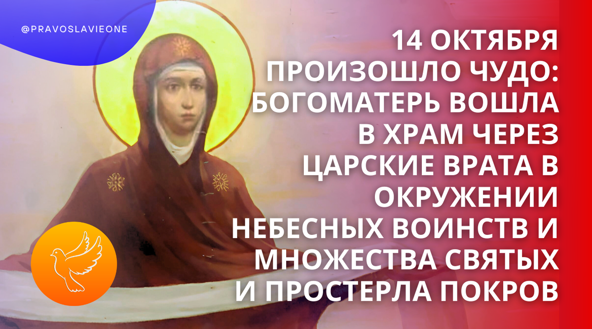 Господь сказал: «Просите, и дано будет вам», — всесильна молитва Матери Божией, которой молится Сам Дух Святый, на Ней почивающий. И если мы верим, что и сегодня Дева предстоит в молитве, то знаем, что все происходящее с нами совершается ко благу. Да умолит нам Богоматерь великое терпение во спасение душ наших. Да воссияет над нами, в наших сердцах и в нашей стране радость и свет Покрова Богоматери.