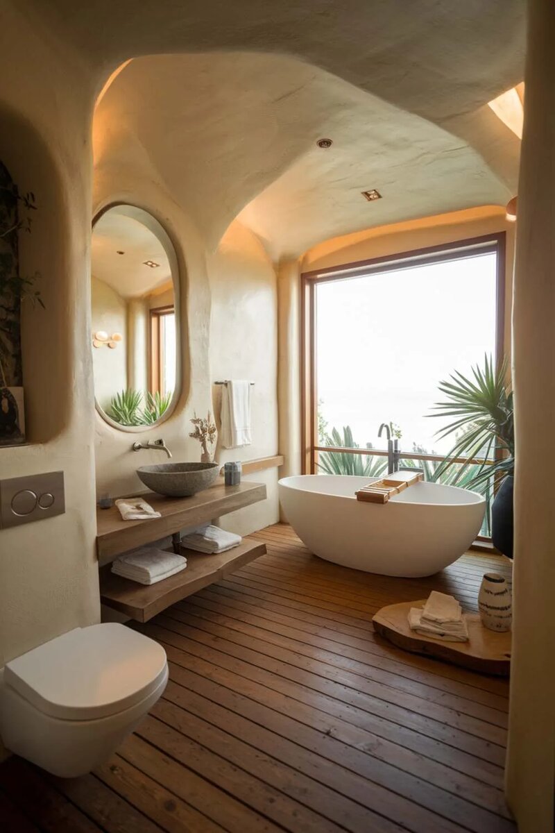 Стиль ванных комнат в стиле «органический модерн» стал одним из самых востребованных направлений дизайна в современном домашнем декоре. Это прекрасное сочетание сочетает в себе теплые, естественные элементы органического дизайна с чистыми линиями и функциональностью современного минимализма. Результат? Пространства, которые кажутся одновременно изысканными и уютными, структурированными и в то же время расслабляющими. В ванных комнатах в стиле «органический модерн» обычно используются натуральные материалы, такие как дерево, камень и растения, в сочетании с простыми геометрическими формами и нейтральной цветовой палитрой. Это гармоничное сочетание создает умиротворяющие уголки, соединяющие нас с природой, обеспечивая при этом удобство и эффективность, которые мы ожидаем от современных пространств. Прелесть этого стиля заключается в его идеальном балансе. Органические элементы приносят тепло, текстуру и ощущение уюта, а современные компоненты — простоту, элегантность и практичность. Вме