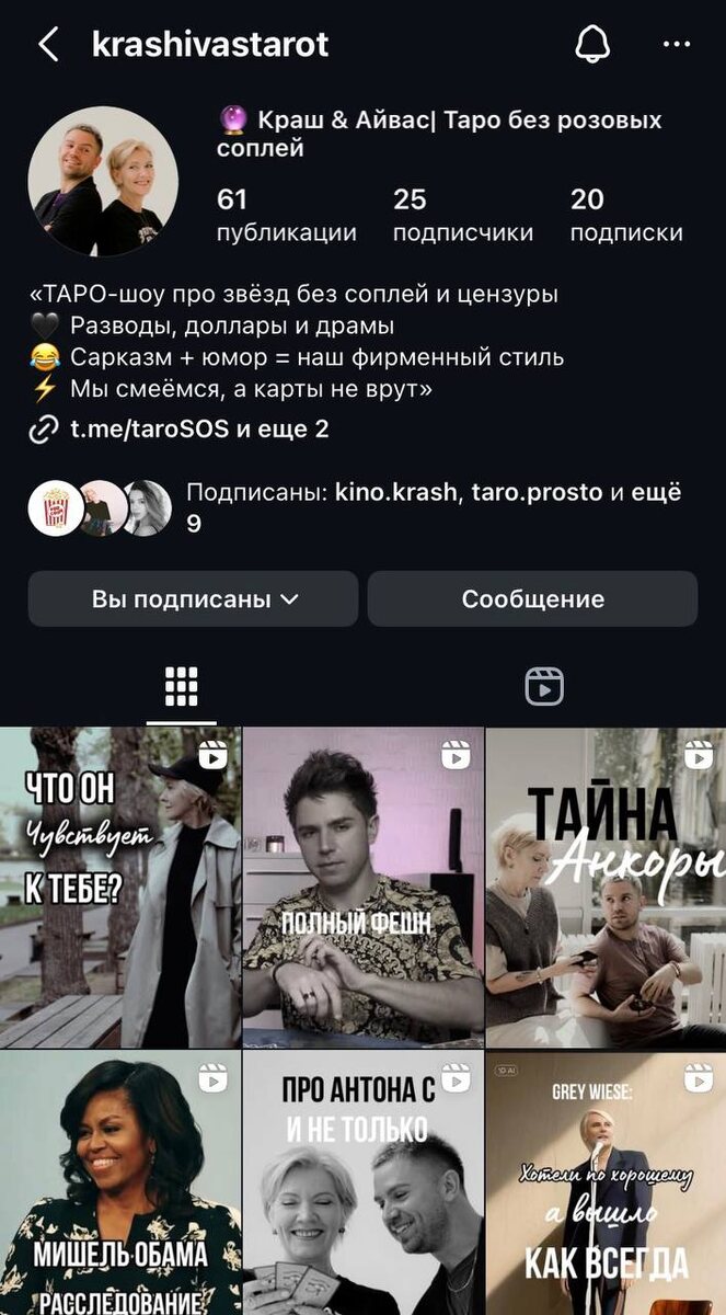У нас появился канал в нельзяграмме) Надеемся что вы нас поддержите подпиской и лайком 😍♥️🤝 https://www.instagram.com/taro.prosto?igsh=bWJ3MDNneHBnOXV3