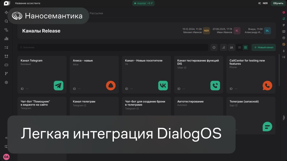 ⭐️ Гибкая интеграция ассистентов в DialogOS 🚀 Платформа DialogOS предоставляет широкий спектр инструментов для интеграции разговорного ИИ в любую цифровую среду — от популярных мессенджеров до сложных корпоративных систем. 💡 В основе нашей архитектуры лежат решения для задач любого уровня сложности. ▪️ Готовые коннекторы. Для быстрого запуска мы предлагаем встроенные интеграции, позволяющие без дополнительной разработки разместить ассистента в Telegram, ВКонтакте, на сайте в виде виджета, а также в качестве навыка для умных устройств Яндекса и Сбера. ▪️ Интеграция с кастомными интерфейсами. Наш ChatAPI представляет собой синхронный REST API, работающий по принципу «запрос-ответ». Он идеально подходит для подключения собственных фронтенд-решений, например, чатов в мобильных приложениях или уникальных веб-интерфейсов. ▪️ Глубокая интеграция с бэкендом. Для сложных, событийно-ориентированных сценариев предназначен DialogOS ServiceAPI. Этот асинхронный API, работающий через webhooks, п