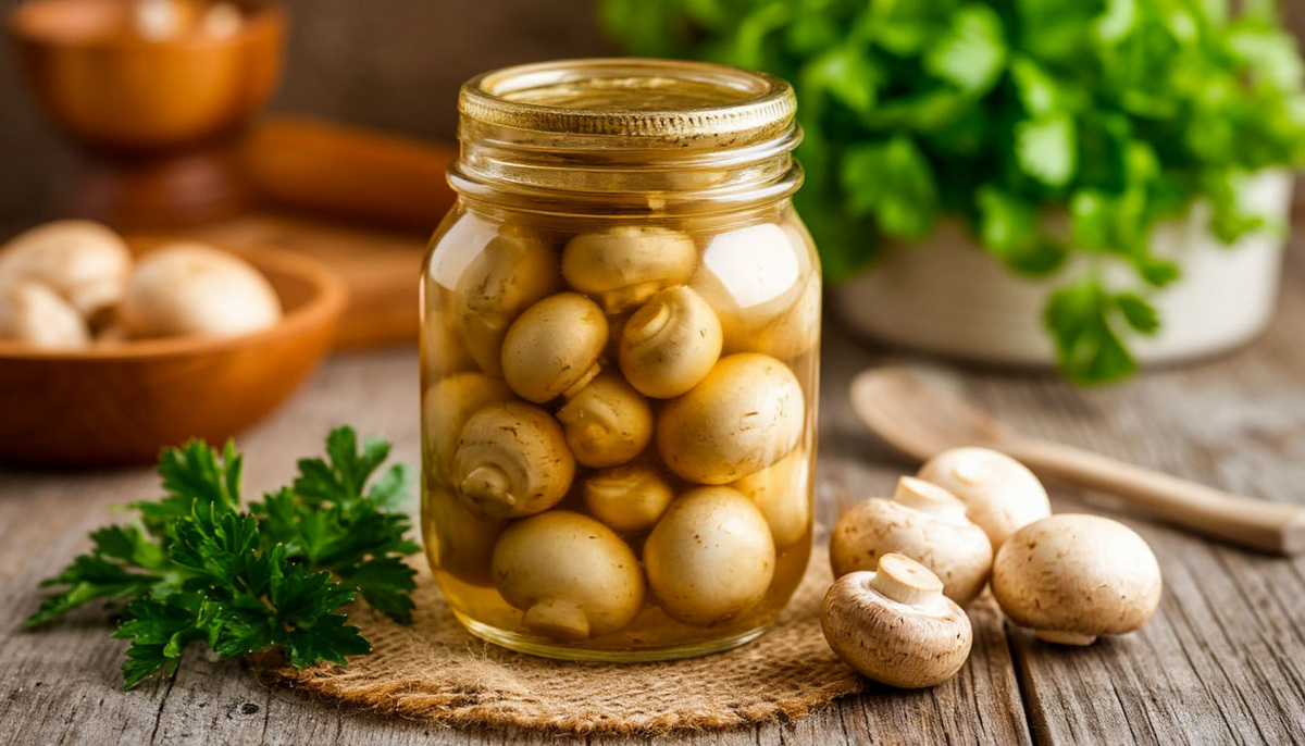 Аромат этой закуски — соблазнительный и многогранный: в нем смешались острота чеснока, пряная теплота гвоздики и лаврового листа, и тонкий, свежий запах укропа. Шаг 1: Подготовка грибов. Тщательно промойте шампиньоны под проточной водой, уделяя особое внимание пространству под шляпками. Удобно использовать мягкую щетку или губку для удаления всех загрязнений. Если на ножках есть поврежденные или потемневшие участки, срежьте их. Крупные грибы можно разрезать на половинки или четвертинки, но целые мелкие шампиньоны выглядят в закуске особенно аппетитно. 💡Совет: лучше выбирать мелкие или средние грибы одинакового размера, чтобы они равномерно промариновались Шаг 2: Приготовление маринада. В кастрюлю подходящего размера влейте воду, растительное масло и уксус. Добавьте соль, сахар, лавровый лист, черный и душистый перец, а также гвоздику, если используете. Чеснок очистите и каждый зубчик разрежьте на 2-3 части или просто раздавите плоской стороной ножа и добавьте в кастрюлю. Шаг 3: Варка