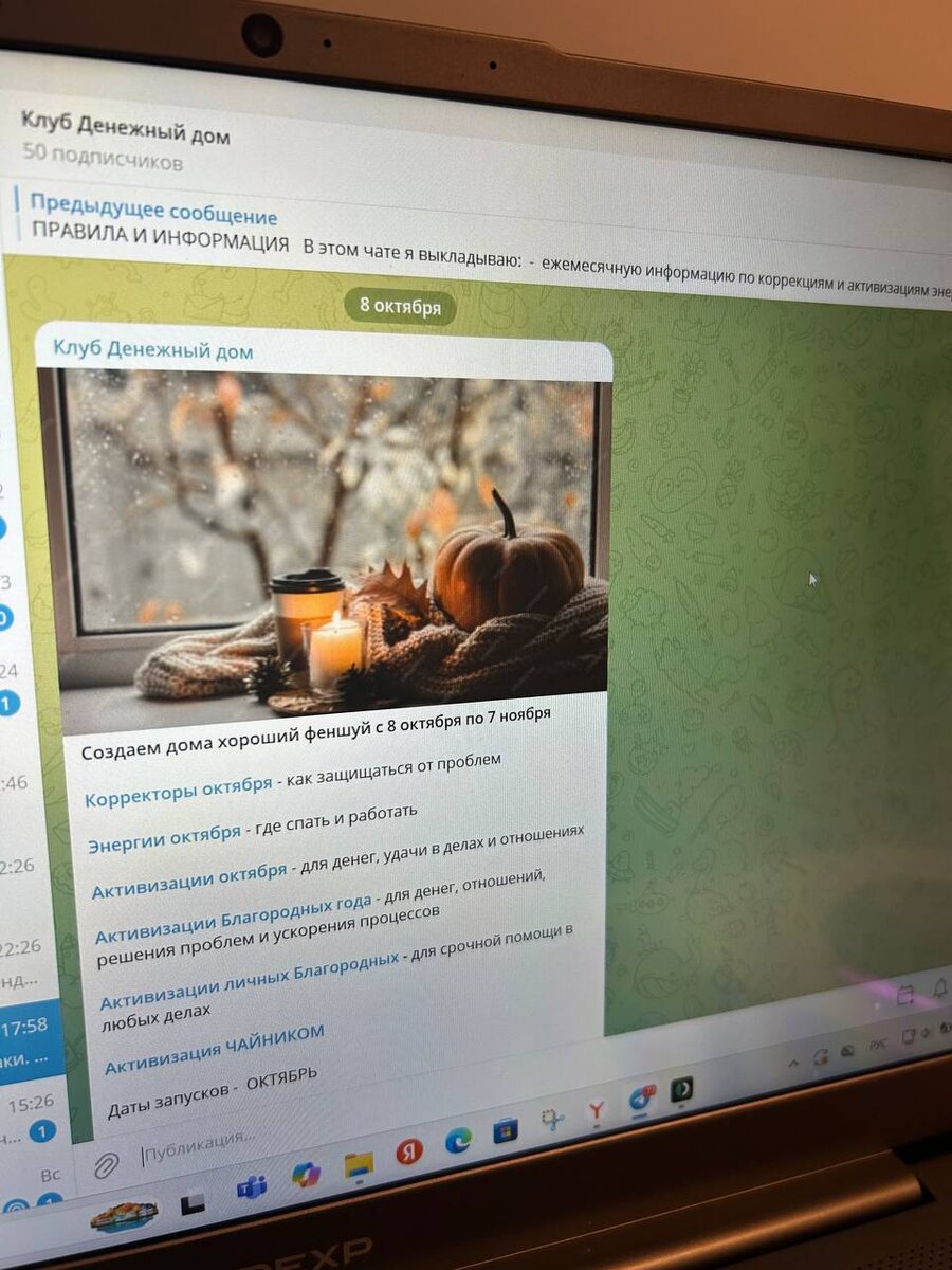 Как сделать, чтобы дом приносил деньги, а не усталость Октябрь это месяц непростых энергий. Многие замечают: стоит чуть сбиться с ритма и сразу появляются усталость, раздражение, неожиданные расходы. Причина часто не в вас, а в том, как дышит дом. Уже три года я веду клуб «Денежный дом» в Telegram, где каждый месяц мы настраиваем фэншуй под текущие энергии. Это помогает стабилизировать жизнь, увеличить доходы и чувствовать поддержку дома. Что внутри клуба: А ещё есть тёплый чат, место, где можно задать вопрос, поделиться результатами и просто почувствовать поддержку.