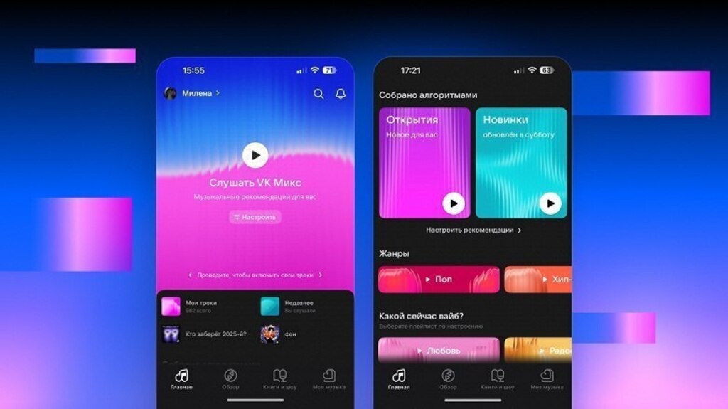 🎧 VK Музыка получила масштабное обновление! Теперь на главной странице удобно расположены разделы по жанрам: поп, хип‑хоп, рок, электроника — чтобы вы могли быстро находить любимую музыку. Появилась новая настройка «Жанры» на основе персональных рекомендаций, которая подстраивается под ваш музыкальный вкус. Дизайн стал ещё более современным и гармоничным, теперь он полностью соответствует стилю музыкального раздела «ВКонтакте». Добавлены новые разделы: «Собрано алгоритмами» — подборки, созданные искусственным интеллектом, «Собрано редакцией» — лучшие треки от музыкальных экспертов, а также обновлённый раздел «Обзор» с актуальными новинками и трендами. Поиск музыки переместился в верхнюю часть экрана для удобства, а иконки в нижнем меню получили свежий дизайн. В разделе «Моя музыка» появился новый функционал — «Микс по моей музыке», который автоматически создаёт плейлист на основе ваших любимых треков. В VK Микс добавлены мультинастройки, позволяющие гибко настраивать подборки под