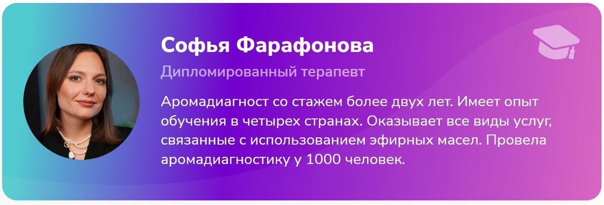 - Изучаешь систему ароматерапии от эксперта Софьи Фарафоновой