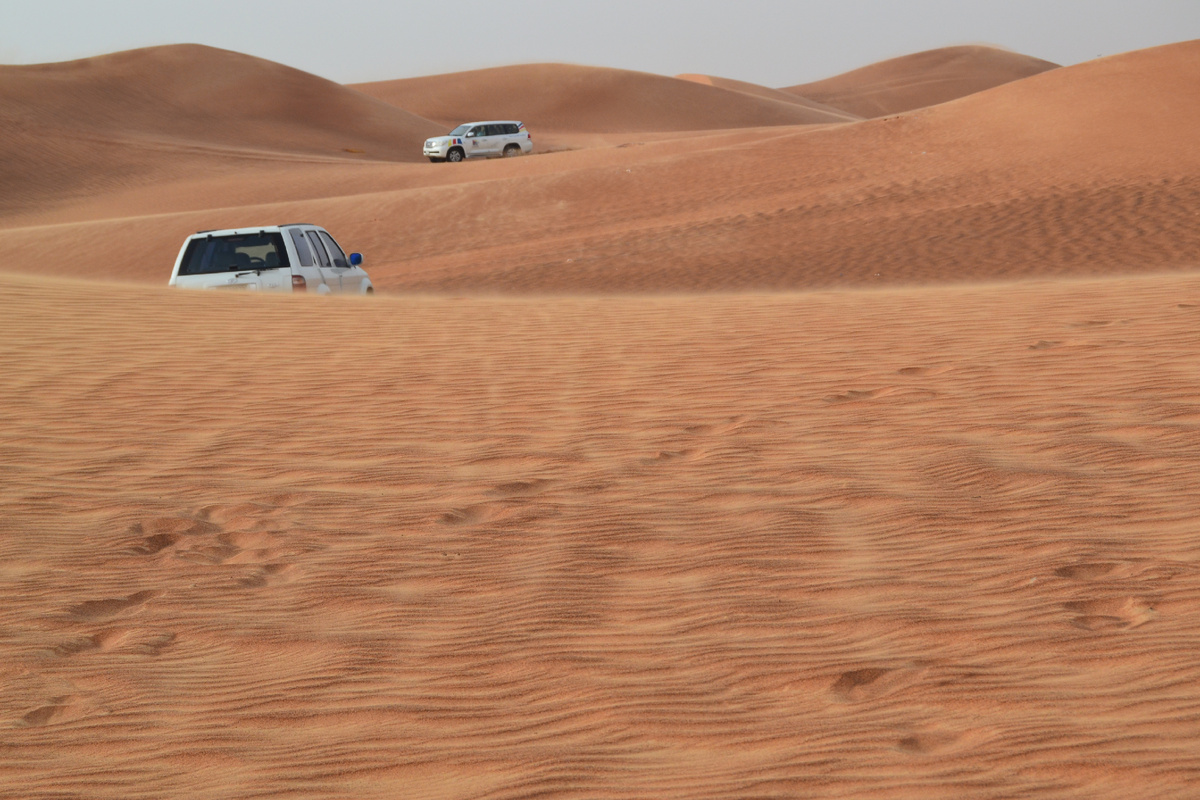 Дубай, блистательный город Объединенных Арабских Эмиратов, круглый год привлекает толпы туристов. После роскошного отдыха на побережье Персидского залива, головокружительных горок аквапарков, прогулок по фешенебельным торговым центрам и посещения знаменитой башни Бурдж-Халифа, танцующих Фонтанов Дубая и живописных парков, невольно возникает вопрос: "Что еще может предложить Дубай?" Ответ прост: пустыня. Да, бескрайние пески. Они здесь повсюду. Проезжая по улицам, замечаешь котлованы новостроек, вырытые прямо в песке. Дорога в соседний город петляет среди дюн. Пустыня – совсем рядом. Чтобы ощутить ее величие, мы выбрали сафари на джипах по Аравийской пустыне. Цены на такие туры варьируются в зависимости от программы, но в целом, на мой взгляд, довольно высоки. У нас уже был опыт езды по бездорожью, поэтому к поездке мы подготовились. Как оказалось, недостаточно. В назначенный час к отелю подъехал внушительный внедорожник Toyota. Решив, что он довезет нас только до места сбора, мы рассла