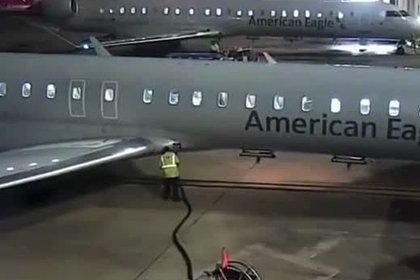Сотрудник аэропорта разбрызгал горючее топливо у самолета перед взлетом и попал на видео