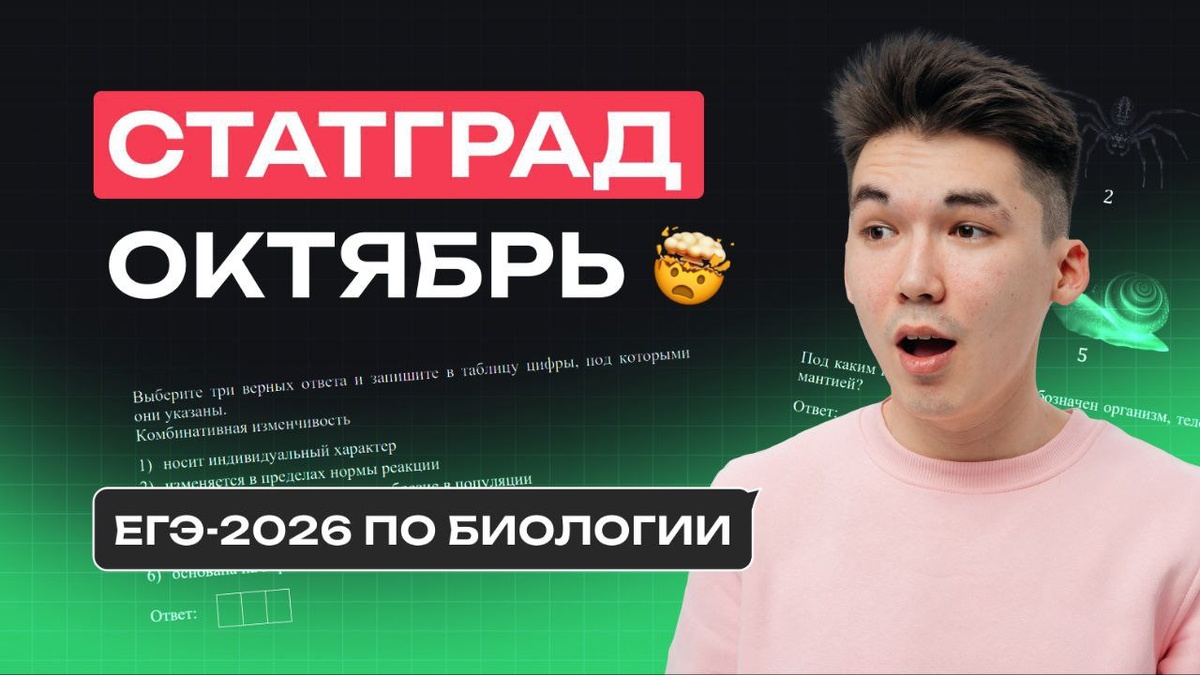 Разбираем первый вариант СтатГрада по биологии в этом году 🔥 СтатГрад выпустил свой первый пробник — а это значит, что пришло время по-настоящему интересных заданий. Сразу скажу: эти задания не отражают уровень ЕГЭ, они сложнее. Зато они расширяют ваш кругозор. Помогают смотреть на биологию и мыслить менее шаблонно. А этот навык выше всего ценится на ЕГЭ 💯 Готовы пошевелить мозгами? Завтра в 17:00 по МСК вместе с Нурланом разбираем октябрьский вариант 🧠 YouTube: https://youtu.be/tn1xCInr-l8 ВК: https://vk.com/video-184221081_456264030