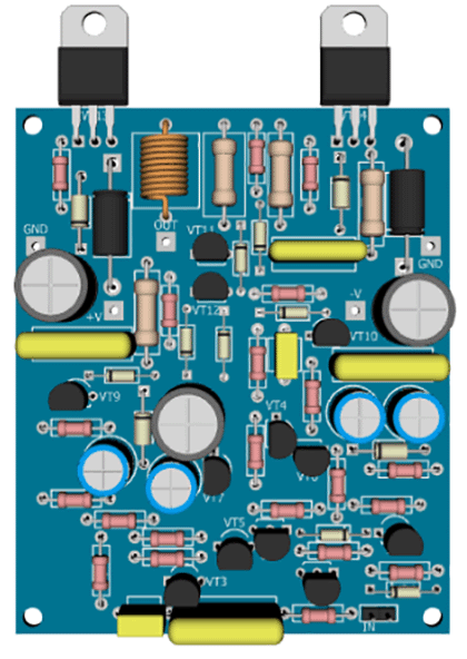 При разработке схемы, представленного в этой публикации УМЗЧ, автор отталкивался от двух принципиальных требований. Во- первых, усилитель должен содержать не более двух каскадов, для обеспечения абсолютной устойчивости с замкнутой общей ООС. Во- вторых, УМЗЧ должен обладать мягкой «лампоподобной» амплитудно-амплитудной характеристикой, предотвращающей жесткое ограничение и возникновение динамических интермодуляционных искажений. Двухкаскадная двухтактная архитектура с двумя комплементарными дифференциальными усилителями на биполярных транзисторах на входе и двумя комплементарными mosfet-транзисторами с общим истоком на выходе, благодаря высокой крутизне последних, имеет коэффициент усиления с разомкнутой ООС около 10000 и поэтому не требует наращивания числа каскадов. А для смягчения амплитудной характеристики в принципиальную схему введено несколько дополнительных элементов. Класс усилителя – АВ;