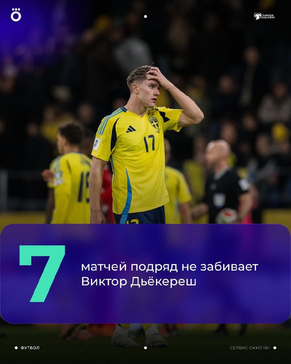 У Дьёкереша не летит. Уже 7 матчей подряд без голов ❌ В трех отборочных играх на ЧМ-2026 тоже 0 забитых мячей. Голевая засуха Вити затягивается. 🇸🇪 Забьет ли швед Косово? Узнаем сегодня в Okko: https://okko.tv/s/uba