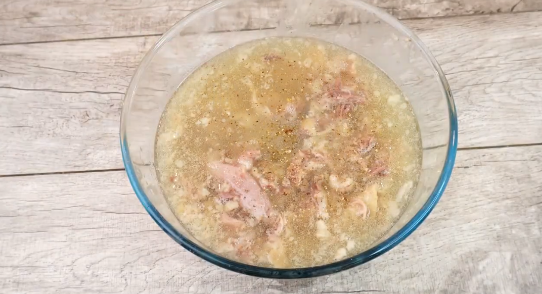 - Секрет бабушки: Она всегда добавляла «связующие» части: свиные ножки, голяшки, уши, хвосты или куриные лапки (очищенные от когтей!). Именно в коже, хрящах и суставах живет тот самый коллаген, который при остывании превращает бульон в упругое чудо.