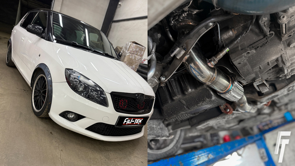 К нам приехала Skoda Fabia, владелец которой решил улучшить характеристики автомобиля и подготовить его к дальнейшему тюнингу. Основная задача — изготовить новую центральную часть выхлопной системы и установить downpipe, что является одним из ключевых этапов подготовки автомобиля к Stage 2 Мы изготовили полностью новый midpipe, в который внедрили спортивный резонатор. Он улучшает продувку системы и формирует более чистое и насыщенное звучание двигателя, не создавая лишнего шума при повседневной эксплуатации Также мы изготовили новый downpipe, который позволил улучшить отклик двигателя и снизить противодавление выхлопных газов. После установки была выполнена прошивка на стандарт Евро 2, чтобы корректно адаптировать систему управления двигателем к новым параметрам В результате автомобиль получил более отзывчивую динамику, приятный спортивный звук и стал на шаг ближе к полноценной конфигурации Stage 2, сохранив при этом комфорт и надёжность в эксплуатации Другие примеры наших работ на са