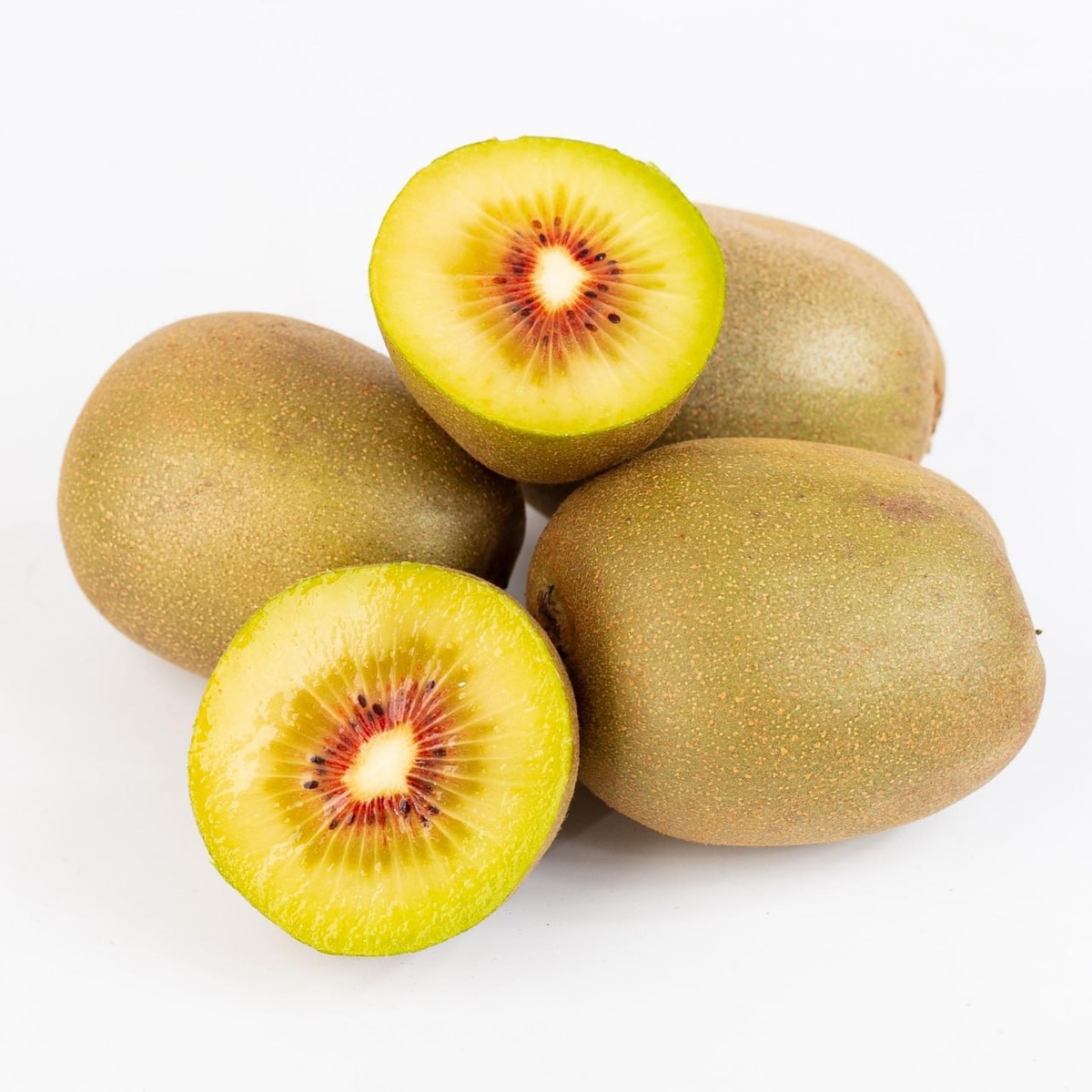 Киви РЕД ГОЛД — это новинка киви премиум-класса. Самоплодный обоеполый сорт киви, который относится к среднерослым растениям, и, который имеет высокую урожайность и начинает плодоносить уже на 3-4 год после посадки. Он предпочитает освещённые места на склонах или холмистых местностях, а также суглинистые, кислые или нейтральные почвы. Умеренный полив и несколько подкормок за сезон помогут повысить урожайность. Побеги этого растения средние, вьющиеся и зеленые, неопушенные. Листья имеют глянцевую поверхность и зеленый цвет. Время цветения наступает в мае, а период созревания начинается в конце августа. У этого фрукта восхитительно сладкий вкус с ягодным оттенком и яркая красная мякоть. У этого фрукта восхитительно сладкий вкус с ягодным оттенком и яркая красная мякоть. Характерная красная мякоть Ред Голд, немного меньшего размера и более мягкая, чем у представителей зеленого и золотого киви. Это происходит, благодаря антоциану – уникальному естественному пигменту, который присутствует
