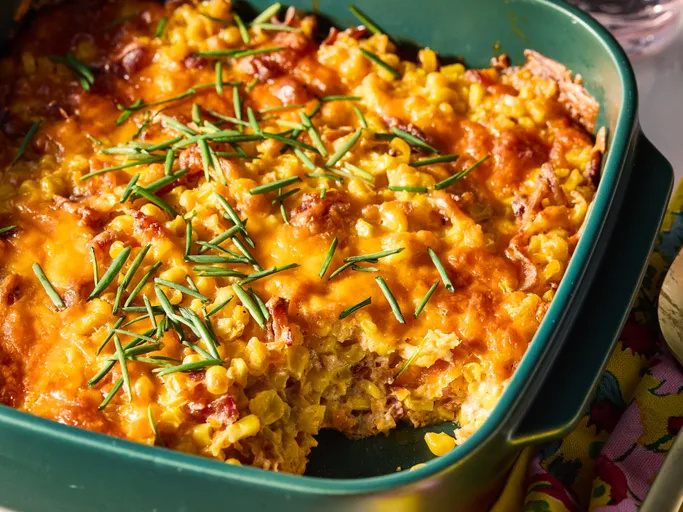 Сытная и вкусная запеканка с кукурузой, беконом и сливочным сыром. Отличный рецепт блюда для семейного ужина. ✔ Подготовьте ингредиенты и разогрейте духовку до 180 градусов. ✔ Взбейте в большой миске сливочный сыр, молоко, муку, чеснок, паприку, соль и перец до получения однородной массы. Добавьте кукурузу, бекон и 150 г натертого сыра. Переложите в форму для запекания. Посыпьте оставшимися 50 г сыра. ✔ Выпекайте в предварительно разогретой духовке 40-45 минут до золотистой корочки. ✔ Перед подачей дайте настояться в течение 5 минут. Украсьте нарезанным зеленым луком. Приятного аппетита!