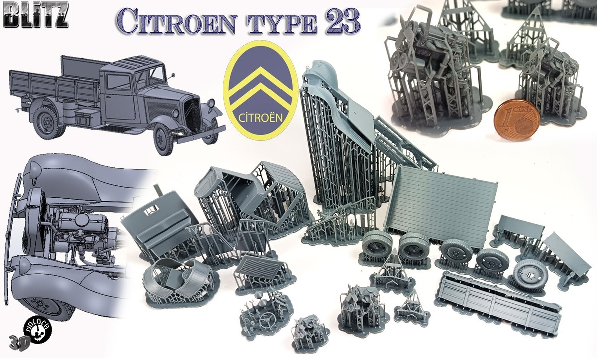 BLITZ kit из Франции выпустила на 3D-принтере очередной вариант Citroën type 23 - теперь со счетверенной установкой13,2-мм пулеметов