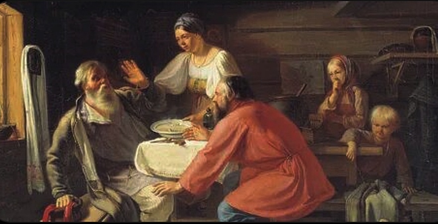 Крестьяне в эпоху крепостного права в России питались простой, но сытной пищей, ориентированной на обеспечение домочадцев едой, чтобы они могли трудиться в поле, в доме и на скотном дворе. Основу рациона составляло то, что можно было вырастить на своём участке, и даже это им приходилось экономить. Некоторые блюда повседневного рациона крестьян: Щи из капусты (перед этим её листья заквашивали в ржаной муке). Для разнообразия в суп добавляли разные овощи по сезону: лук, чеснок, укроп, репу или редьку, картофель. Для придания жирности щи заправляли растительным маслом (льняным или конопляным) или жирной сметаной. Каши из овсяной, ржаной, ячменной и гречневой круп. Консистенцию стремились сделать высоковязкой, часто добавляли молоко, масло, иногда овощи и мясо. Ржаной хлеб — его выпекали раз в несколько дней. В праздничные дни в тесто иногда добавляли немного пшеничной муки, что делало хлеб более мягким и воздушным. Репа — её готовили множеством способов: запекали, варили, ели сырой,