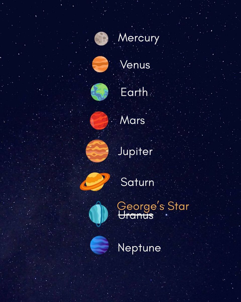 Планета по имени Георг? В 1781 году Уильям Гершель открыл седьмую планету Солнечной системы и назвал её «Звездой Георга» в честь короля Георга III. Однако астрономы всего мира единогласно сказали «нет» и вернулись к традиции называть планеты в честь римских богов. Честно Украдено тут