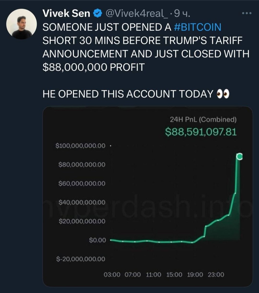 Можно сколько угодно изучать свечи, Фибоначчи, скользящие, средние и т.п. А можно за 30 минут до введение тарифов от президента Трампа открыть шорт на крипту, и заработать 80 млн. $ на чистом аккаунте. А остальные да, читайте про технический анализ, лохи :) Русский ИТ бизнес