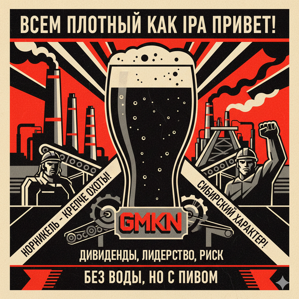 Всем плотный как IPA привет. Сегодня мы начинаем новую, надеемся, регулярную рубрику: «Тикер под пиво». Первая акция в нашей дегустации — та, от которой волки воют, а трейдеры плачут от счастья (или наоборот, смотря в какой стакан смотрят). Знакомьтесь — «Норникель» (GMKN). Это не просто тикер, это суровый сибирский характер в вашем портфеле, поверьте, его характер крепче Охоты. Представьте: где-то там, за полярным кругом, где холодно так, что ручьи замерзают со звоном, гигантские заводы добывают и плавят металлы. Никель, палладий, медь. Звучит скучно? А теперь осознайте: без этого никеля не будет вашей «яблочной» техники, а без палладия не поедет современный автомобиль. GMKN — это скрытый поставщик технологического прогресса, закопанный в вечной мерзлоте. Это как хмель в вашем IPA — его не видно, но без него никак. Что же хорошего в ГМКН? Пред нашим пивным оком предстают три важные составляющие: Дивиденды, Лидерство, Экшн. Начнём по порядку. Прежде всего стоит помнить, что Норникель н