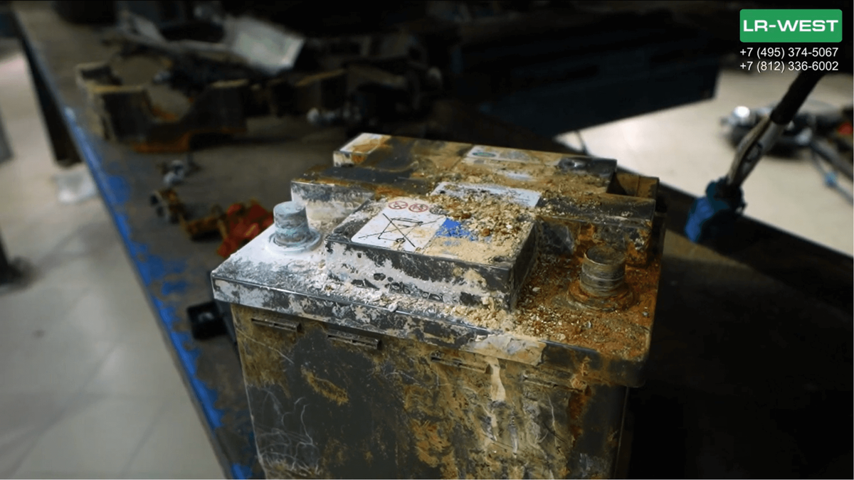 Первым делом, когда нет напряжения, ничего не горит, смотрим аккумулятор. Известная больная тема для этих автомобилей. Литиевые аккумуляторы, которые в случае неправильного обращения с ними могут полностью разрядиться, т.е. отключиться внутреннем реле. Подробнее про особенности литиевых аккумуляторов мы писали на нашем сайте в статьях «Может ли бустер убить аккумулятор Range Rover L460. Заговор Land Rover или техническая реальность» и «Новый Range Rover 2023 года. Проблемы с АКБ. Что нужно знать владельцу.».