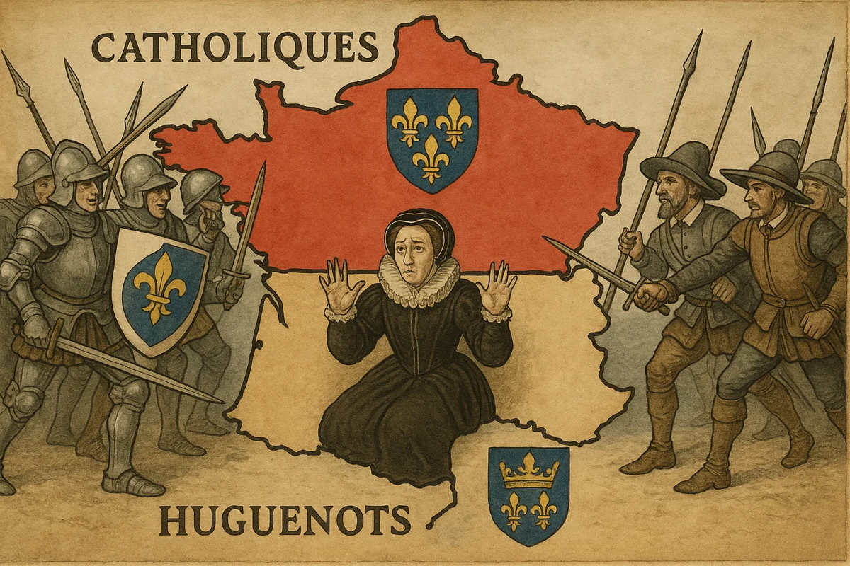 В XVI веке во Франции, как и в Германии, стал популярен протестантизм, а именно — кальвинизм. Французских протестантов называли гугенотами. Страна раскололась на два лагеря: После того, как король Генрих II нелепо погиб на рыцарском турнире, к власти пришли его слабые сыновья. За их спиной всем заправляла хитрая королева-мать Екатерина Медичи. В 1562 году люди герцога Гиза напали на молящихся гугенотов в местечке Васси. Это стало искрой, которая разожгла пламя религиозных войн, продолжавшихся более 30 лет. Чтобы помирить враждующие стороны, Екатерина Медичи устроила свадьбу: своей дочери-католички Маргариты и лидера гугенотов Генриха Бурбона. На свадьбу в Париж съехались все знатные гугеноты. Католические лидеры во главе с герцогом Гизом решили воспользоваться этим как ловушкой.