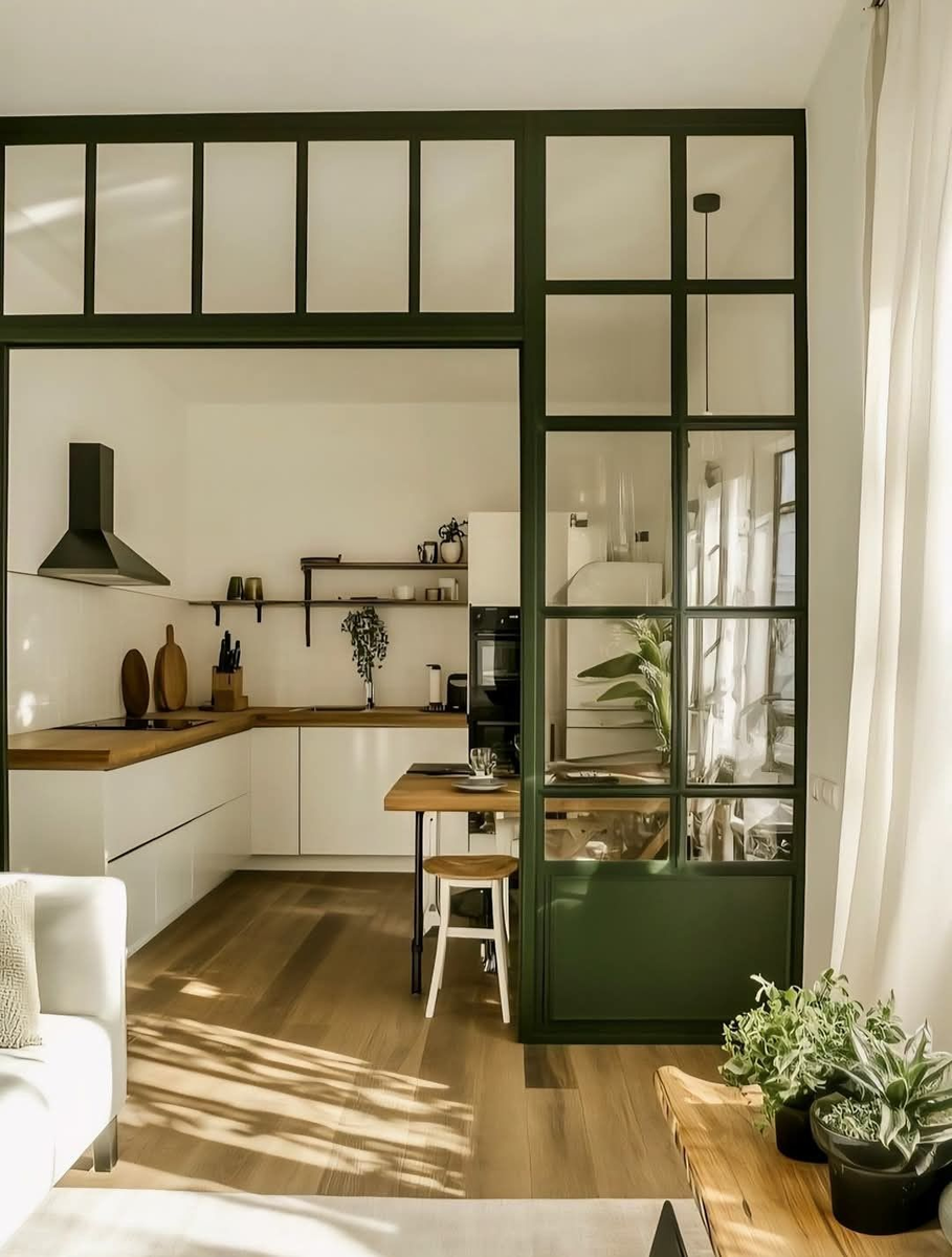 В современном городе пространство квартиры часто ограничено, а желание иметь функциональные, уютные и стильные помещения — высоко. Одним из самых эффективных способов создать комфорт и визуальное разделение является использование перегородок. ☘️ Они помогают зонировать квартиру, выделяя функциональные области, не уменьшая при этом ощущение простора. В этой статье расскажем, как перегородки применяются для зонирования кухни, спальни и прихожей — самых важных зон в квартире. Кухня — сердце дома, место для приготовления еды и семейных встреч. Часто кухонное пространство совмещают с гостиной или столовой, и перегородки помогают создать четкую границу. Идеи для кухни: - Стеклянные и прозрачные перегородки. Они отделяют кухню, не закрывая обзор и позволяя естественному свету проникать в обе зоны. Матовые или с легким узором — отличный вариант для приватности без утяжеления пространства. - Ширмы и раздвижные панели. Могут быстро трансформировать пространство — закрыть кухню во время готовки