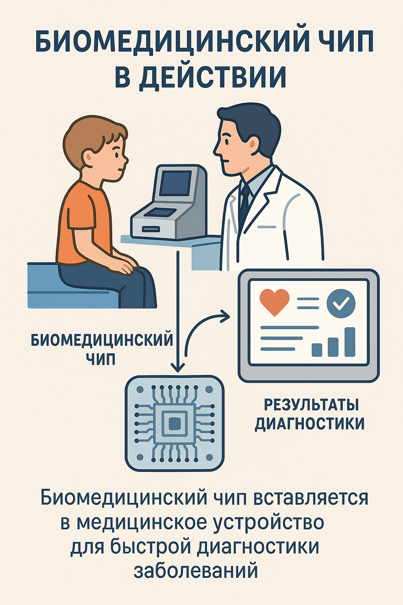 Представьте: вы приходите с ребёнком к врачу, и анализ на десятки опасных вирусов и бактерий готов уже через минуту, прямо в поликлинике. Ещё вчера это казалось фантастикой, а сегодня наука уже близка к тому, чтобы сделать это повседневной реальностью. В 2025 году ученые и инженеры представили уникальные биочипы, которые способны за секунды выявлять инфекцию и экономить драгоценное время врачам и пациентам. Важно: этот биочип — не вживляемый прибор, а небольшая пластинка вроде тест‑полоски. Её используют только врачи, помещая каплю крови или слюны пациента на поверхность чипа, который далее вставляют в компактный анализатор. Через минуту на экране появляется точный результат. Такой биочип может храниться прямо в процедурном кабинете, лаборатории или пункте неотложной помощи — всегда под рукой у врача. Он не требует ни специальных условий, ни долгого обучения персонала. Всё сделано так, чтобы диагностика стала простой, быстрой и удобной. Самое интересное, что первые реальные чипы для б
