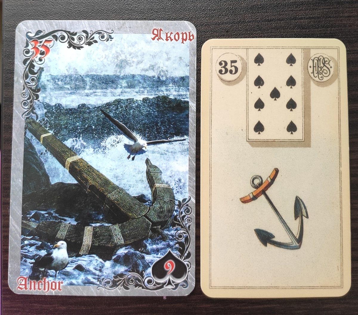 🧿карта ЯКОРЬ 👁️ТАЙНА СТАРОГО ЗАМКА колода Ленорман 📌Я буду рассматривать карту и описывать её через собственное восприятие ✍️По желанию присоединяйтесь к описанию карты. 📝Возможно Вы увидите🔎что-то другое... _____ ✍️Карта ЯКОРЬ вызывает у меня раздвоенные чувство. 👁️Начну описывать карту с бушующего океана позади лежащего якоря. Волны довольно пенные, что указывает ни силу воды с которой не возможно справиться. Парящая чайка говорит о силе воздуха, что в целом описывает штормовое предупреждение. Сам же Якорь находится не в водной стихии, а лежит на суше. Он внушительных размером, а имеющиеся на нём насечки говорят о том, что он был не раз использован по назначению. С одной стороны Якорь лежит себе и его обсолютно не волнует, что происходит вокруг. А с другой стороны он и не находиться в воде и не исполняет функцию удержания. Якорь лежит и тем самым проявляет полное своё бездействие (именно якорь мало, кто может сдвину с места). Это тот случай, когда что-то оставил, найдёшь